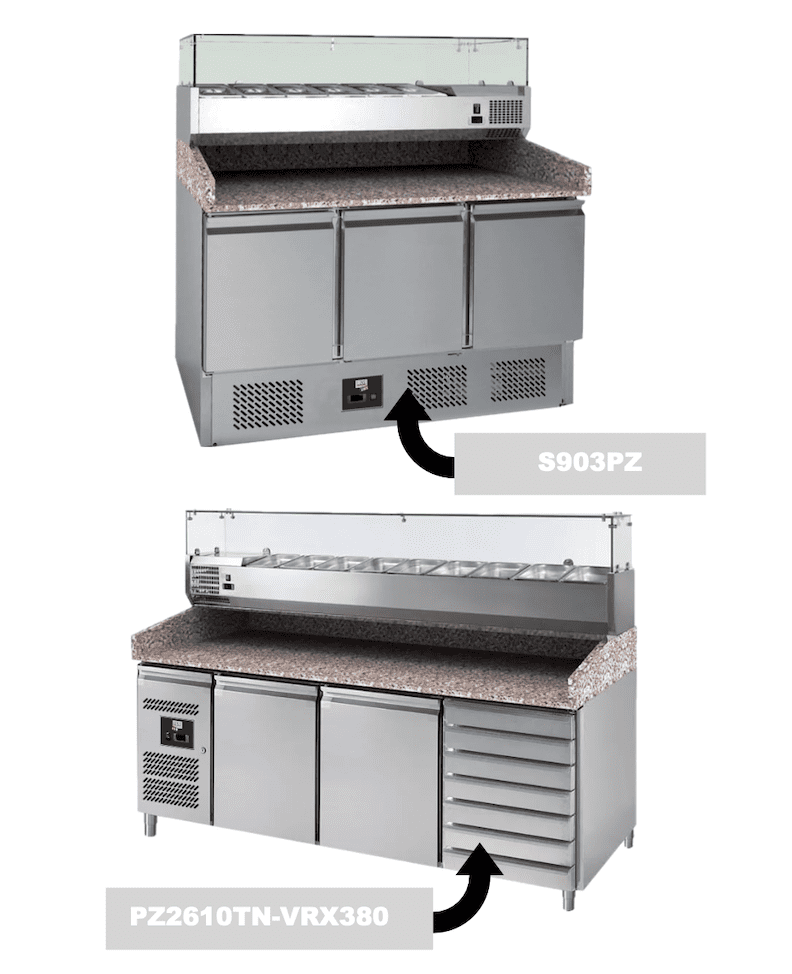 Dotation : 1 niveau de glissières et 1 grille par porte Dégivrage automatique Construction inox intérieur et extérieur Isolation 35 mm (mousse polyuréthane) Thermostat électronique DIXELL Portes avec système de fermeture automatique Plan de travail granit rose ép. 30 mm Gaz réfrigérant : R600a Poids : 130 Kg